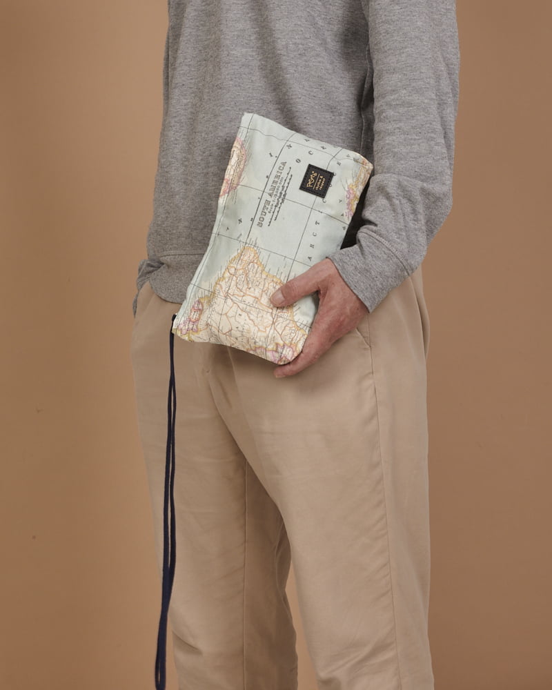 PET Map toiletry bag, a handbag with a strap to carry it as a shoulder bag.
