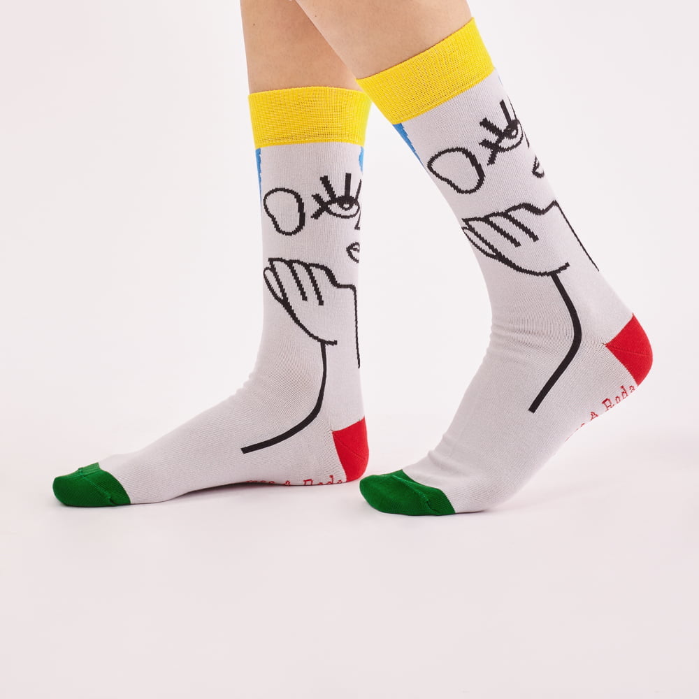 Original and colorful patterned socks designed by artists. #10deditos is our permanent collection of socks designed by artist and illustrator friends of our company. In every case, these are the first socks they've designed. We love inviting them to capture their creations in this fun and simple item. They are produced in Portugal with rhythm and respect.