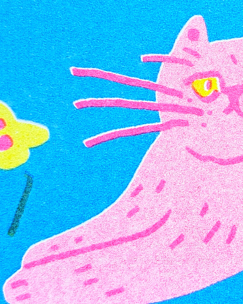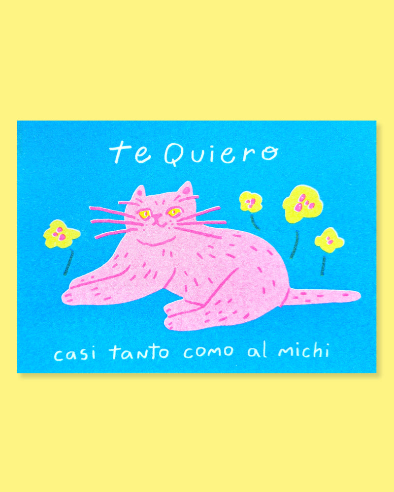Ilustración tamaño A6 impresa en risografía sobre papel Munken Pure ahuesado con certificado FSC, de 240g.