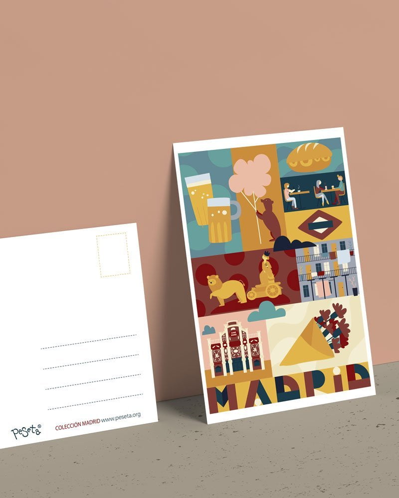 Postcard designed by us with some iconic elements of Madrid, our city.