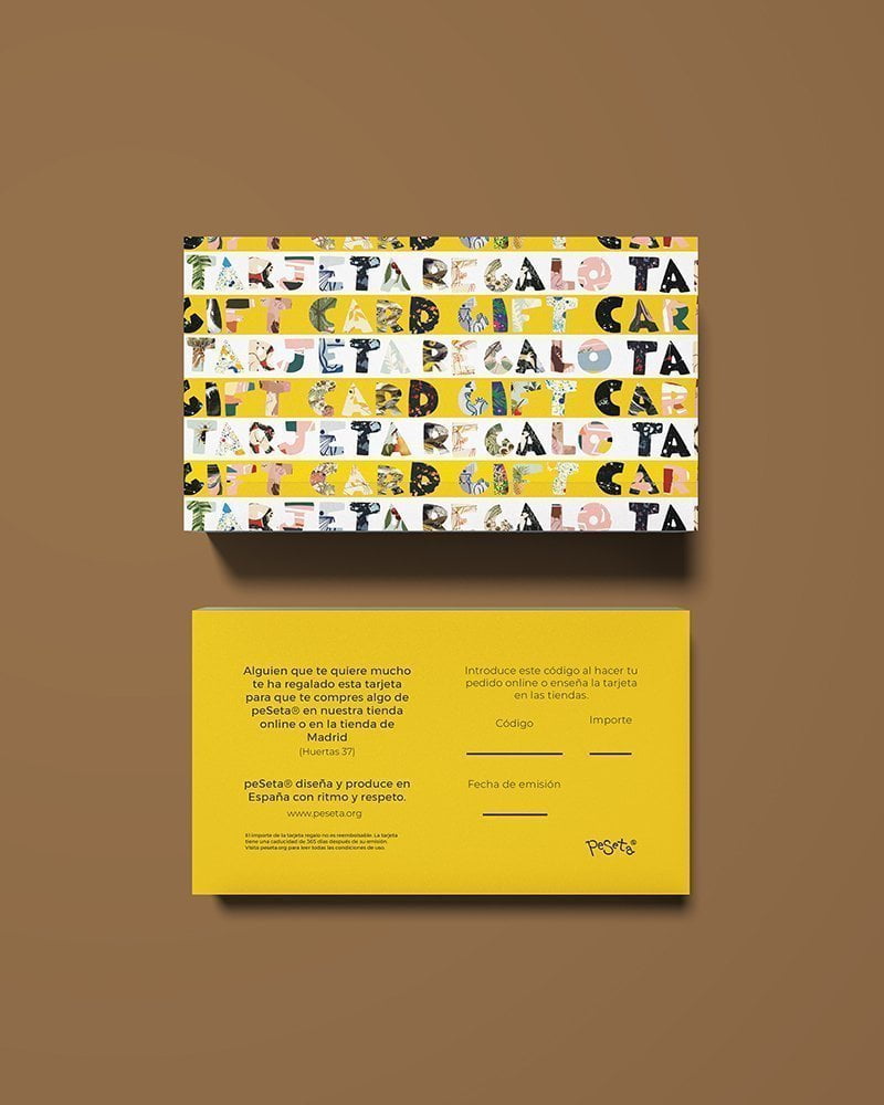 The Gift Card contains a personal code that can be used in this online store or in any of our stores in Madrid. It is valid for peSeta products and other brands available on the website and in our stores.