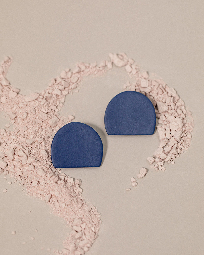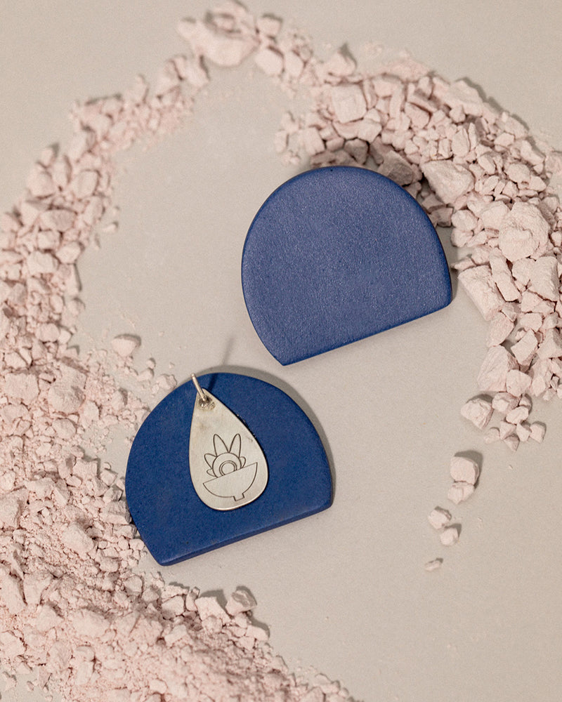 Pendientes de porcelana ligeros elaborados de forma artesanal con porcelana teñida color azul cobalto. La trasera de los pendientes es de plata, elaborada de forma artesanal, donde encontrarás el logotipo grabado.
