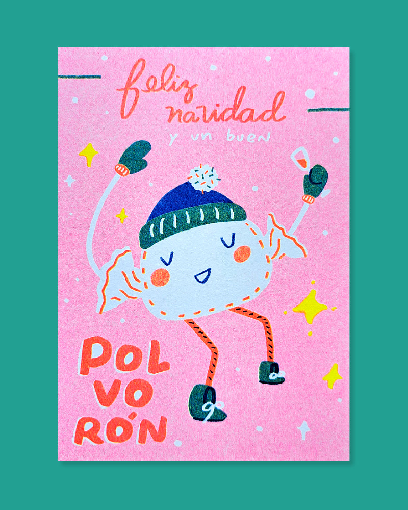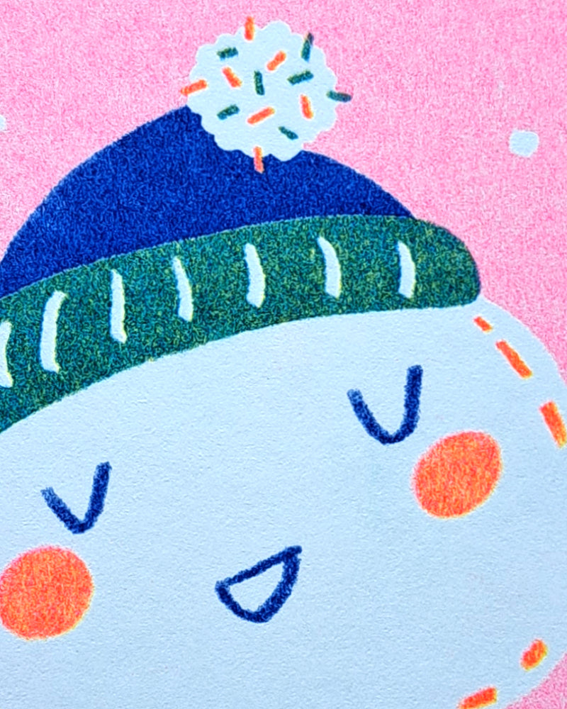 Ilustración tamaño A6 impresa en risografía sobre papel Munken Pure ahuesado con certificado FSC, de 240g.